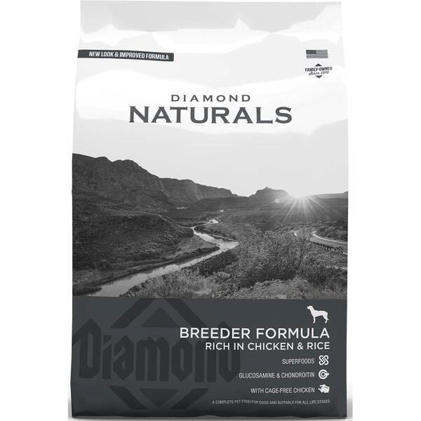 Diamond Naturals Breeder Formula Chicken&Rice – полноценный и сбалансированный корм с мясом цыплят свободного выгула и суперфудами для собак. Высокий уровень протеина и жира обеспечивает высокопитательный рацион для поддержания здоровья собак на всех стадиях жизни, включая беременность и кормление грудью. Контролируемый уровень золы обеспечит правильный уровень минералов, необходимых в период кормления грудью и беременности, а также в период роста щенков. Правильный баланс омега-3 и омега-6 жирных кислот для здоровья кожи и блестящей шерсти. Настоящая курятина и дегидратированное куриное мясо являются источником высококачественного протеина для поддержания мускулатуры животных в здоровом тонусе и кондиции. Создано для бридерских собак и щенков.