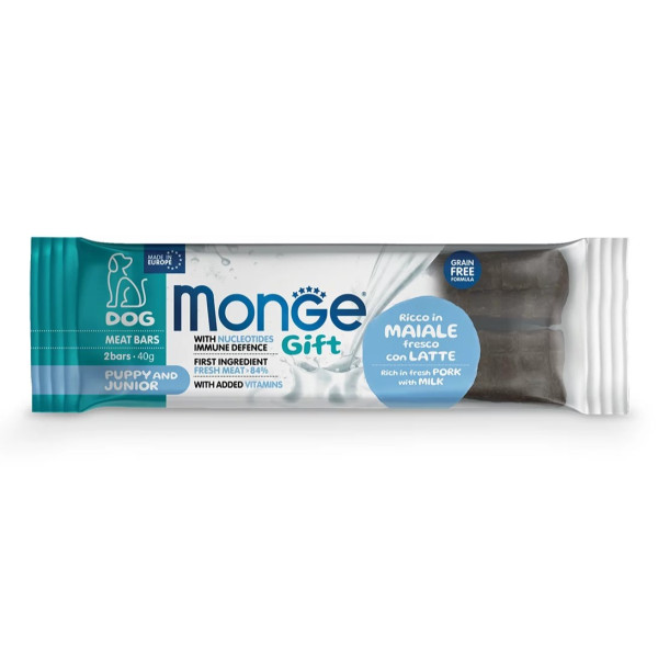 Monge Ggift Puppy and Junior Dog Rich in Fresh Pork with Milk and Nucleotides - это вкусные 2 батончика для щенков.