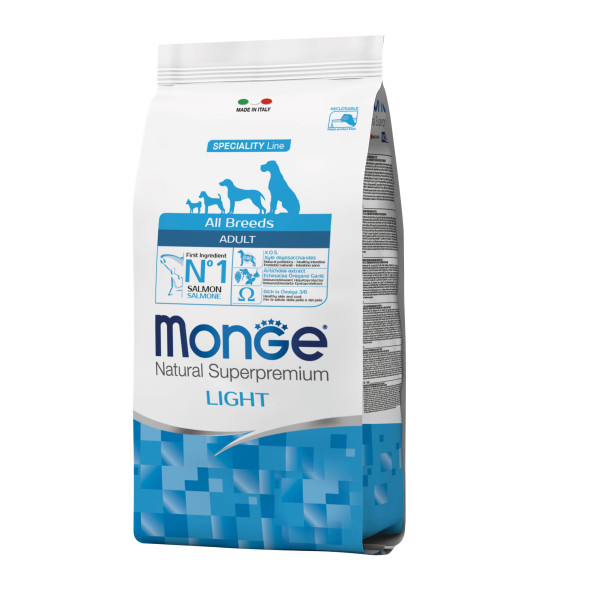 Покупайте корм Monge Dog All breeds Adult Light с лососем выгодно
