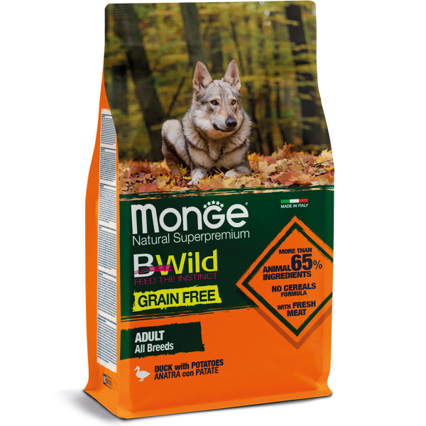 Monge Dog Bwild Grain Free (Утка) -  Беззерновой корм с уткой для взрослых собак разных пород