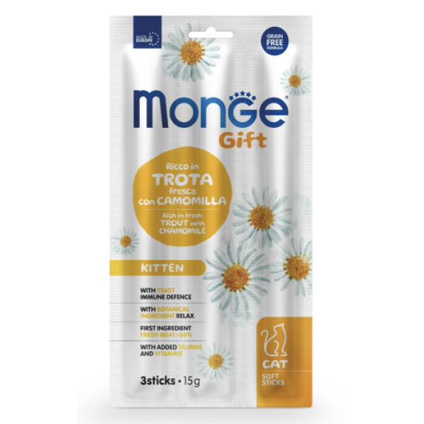 Monge Gift Cat Kitten (Форель с ромашкой) - это дополнительный корм для растущих котят.