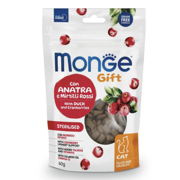 Monge Gift Cat Sterilsed (Утка с клюквой) - это дополнительный корм для стерилизованных взрослых кошек.