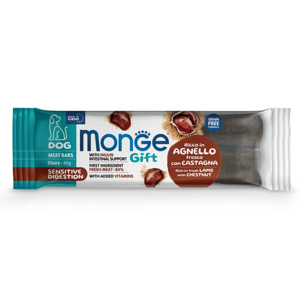 Monge Gift Sensitive Digestion Dog rich в fresh Lamb with Chestnut and Inuline - это вкусное и полезное лакомство для взрослых собак.