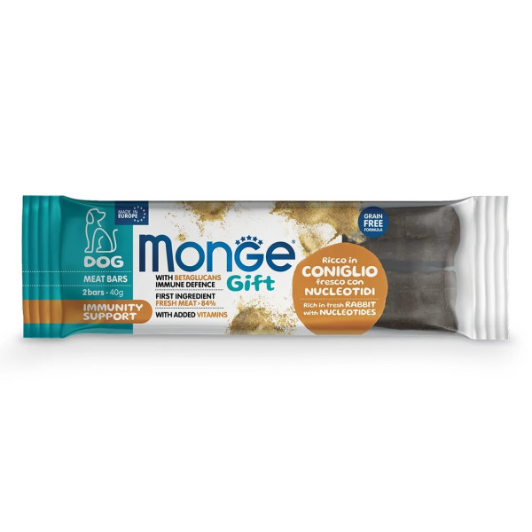 Monge Gift Immunity Support – это лакомство для взрослых собак с мясом кролика и нуклеотидами.