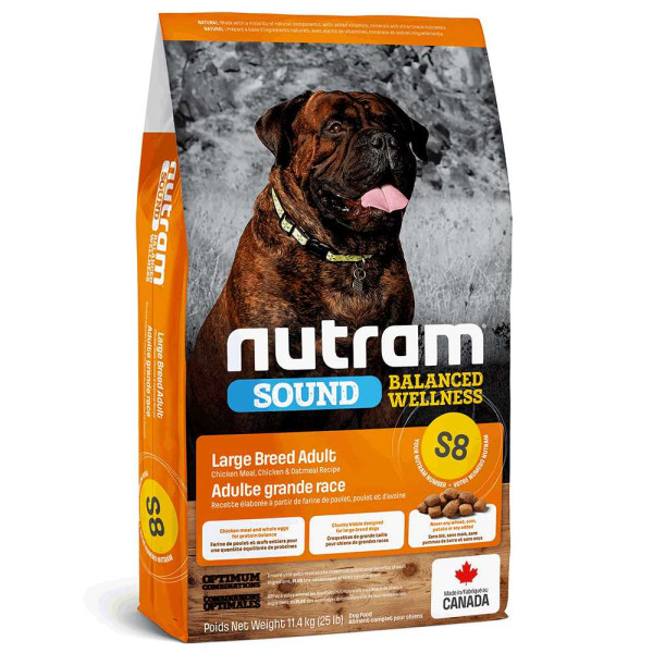 Корм Nutram S8 Sound Balanced Wellness Large Breed Adult Dog относится к кормам категории Holistic (Холистик), у которых основным правилом подбора ингредиентов есть принцип "изнутри наружу". Этот полнорационный сухой корм предназначен для взрослых собак крупных пород.