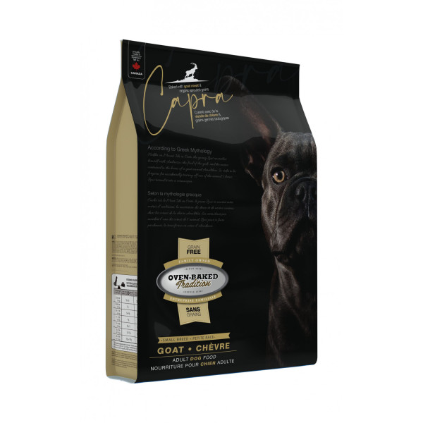 Oven-Baked Tradition Capra Dog Adult Small Breed Goat Grain Free - Беззерновой сухой полнорационный корм с козлятиной, фруктами и овощами для взрослых собак малых пород. Изготовлен по технологии медленного выпекания в печи при низких температурах, благодаря чему концентрация питательных веществ в каждой грануле намного больше, нежели в обычных сухих кормах.