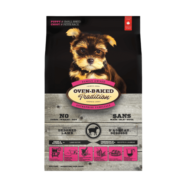 Oven-Baked Tradition Puppy Small Breed Lamb - Полнорационный сухой корм с ягнятиной, фруктами и овощами для щенков малых пород от 6 недель до 12 месяцев. Изготовлен по технологии медленного выпекания в печи при низких температурах, благодаря чему концентрация питательных веществ в каждой грануле намного больше, нежели в обычных сухих кормах.