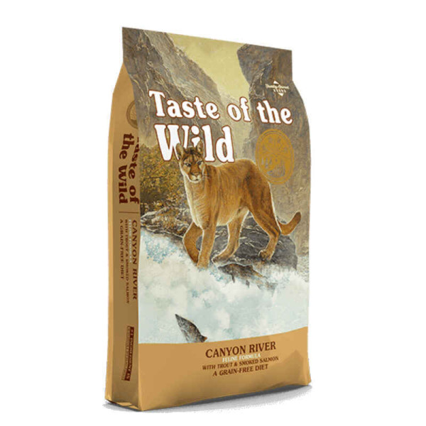 Taste of the Wild Canyon River Feline Formula – сухой корм для кошек всех пород с форелью и лососем. Хотя домашние питомцы не обязаны выживать в условиях дикой природы, современная наука утверждает, что ДНК кошек имеет много общего с ДНК их диких родственников. Именно поэтому был создан Taste of the Wild Canyon River Feline Formula – полноценный и сбалансированный беззерновой корм класса холистик с добавлением форели и копченого лосося кошек и котят, чтобы они питались так же как их предки. Тейст оф зе Уайльд дает естественную энергию и обеспечивает инстинктивные вкусовые предпочтения Вашего любимца. Рецептура корма изготовлена из форели и копченого лосося, где единственным источником мясных протеинов является рыба, идеально подходящая для кошек с аллергией и чувствительным пищеварением.