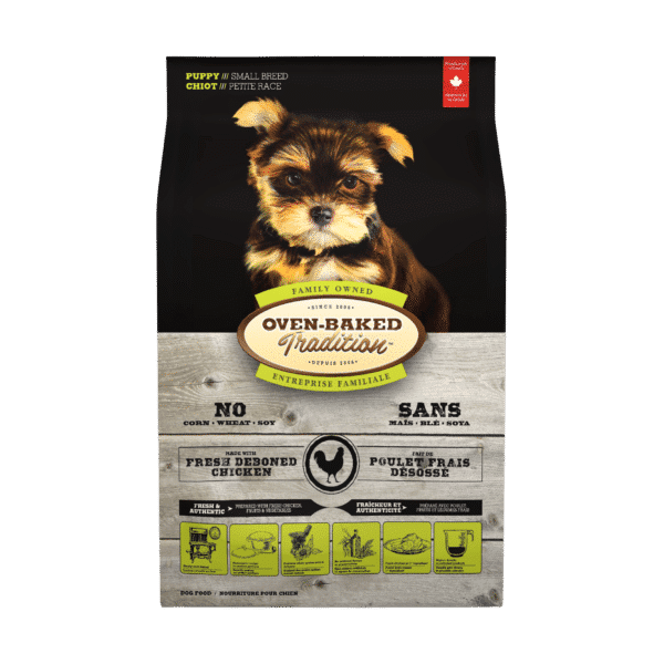 Oven-Baked Tradition Puppy Small Breed - Полнорационный сухой корм со свежим мясом курицы, фруктами и овощами для щенков малых пород возрастом от 6 недель до 12 месяцев. Изготовлен по технологии медленного выпекания в печи при низких температурах, благодаря чему концентрация питательных веществ в каждой грануле намного больше, нежели в обычных сухих кормах.